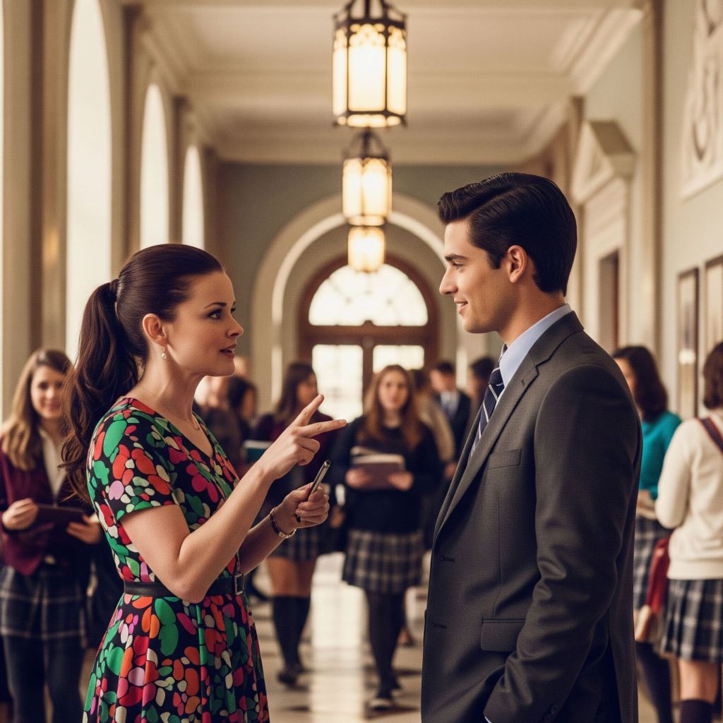 Questa scena mette in evidenza il contrasto tra l’approccio disinvolto di Lorelai e il rigore di Chilton, sottolineando il concetto che “le regole sono regole”.