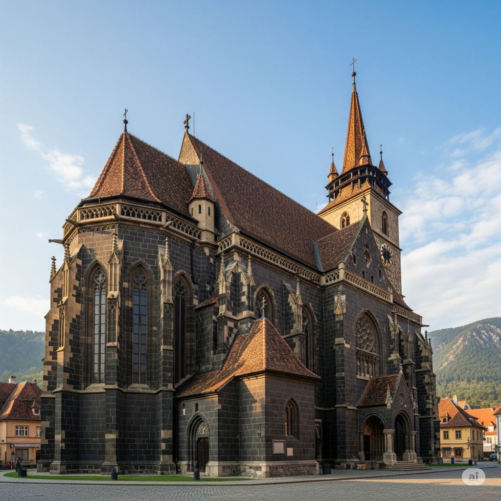 Dalla piazza, lo sguardo è inevitabilmente attratto da un’ombra maestosa che domina l’orizzonte: la Chiesa Nera (Biserica Neagră). La sua mole imponente e le sue pareti scure, annerite da un devastante incendio del 1689 che la segnò per sempre, le conferiscono un’aura di solennità e mistero. Entrare in questa che è la più grande chiesa gotica della Romania è un’esperienza che toglie il fiato.