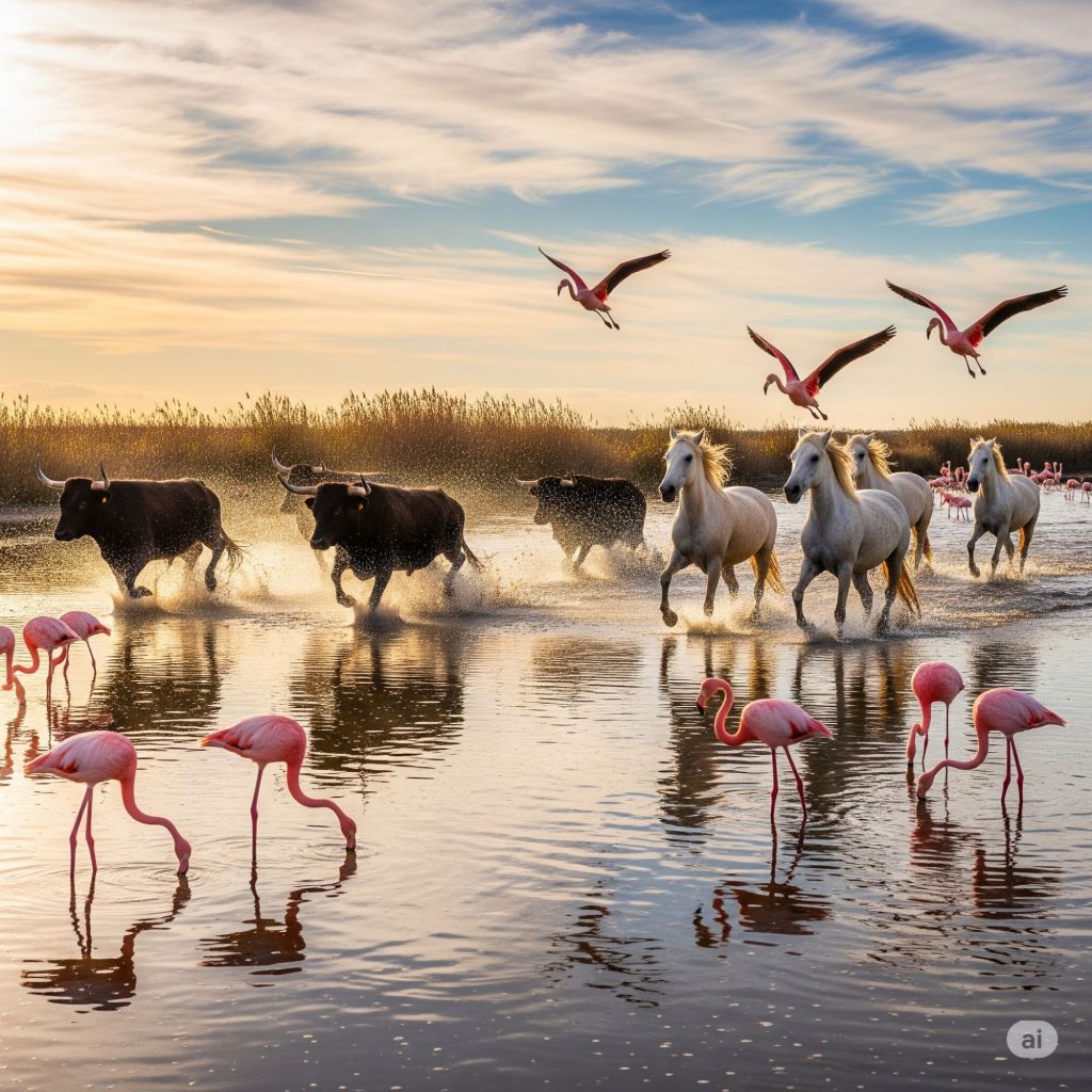 ➡️ Consiglio: Per un’esperienza completa, organizza un’escursione a cavallo al tramonto, guidato da una guida locale: attraverserai i sentieri delle paludi, vedrai stormi di uccelli decollare a pochi metri da te e sentirai sotto di te la forza viva della Camargue.