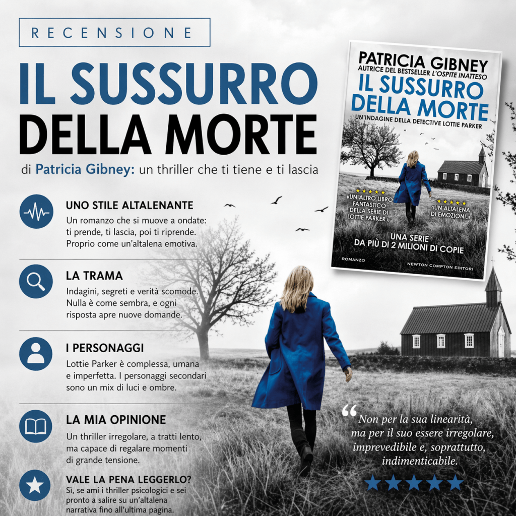 Ci sono libri che scorrono lineari, senza intoppi. E poi ci sono quelli come Il Sussurro della Morte, che non seguono una traiettoria precisa ma ti trascinano su e giù, come un’altalena emotiva. È esattamente questa la sensazione che mi ha lasciato: un continuo alternarsi tra momenti in cui non riesci a smettere di leggere e altri in cui fai fatica ad andare avanti.